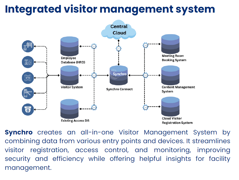 Synchro’s Visitor Management System is designed to modernize the way buildings handle guest access. By integrating with access control devices, security checkpoints, ID systems, and internal databases, our platform ensures a smooth, secure, and efficient flow of people within your facility.